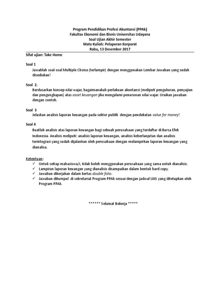 Bidang akuntansi yang berhubungan dengan pemeriksaan laporan keuangan disebut …. Pada video ini, widyaiswara pusdiklat keuangan umum, theresia vera yuliastanti, membahas tentang soal pilihan ganda sebagai salah satu instrumen evaluasi . Menggenjot pendanaan di lembaga pendidikan islam, misalnya madrasah, pondok. Jawaban a, b, dan c benar 16. A peningkatan nilai pemegang saham ditentukan oleh nilai eva.